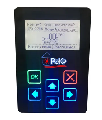 В котле РЭКО контроль, настройка котлом осуществляется с помощью цифрового дисплея, на русском языке.