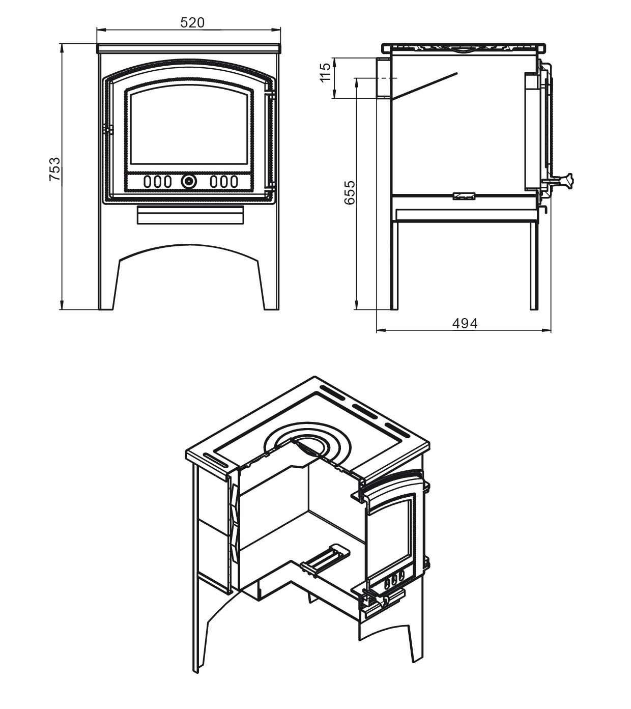 - Удобство установки: Верхнее подключение дымохода облегчает монтаж в большинстве случаев.